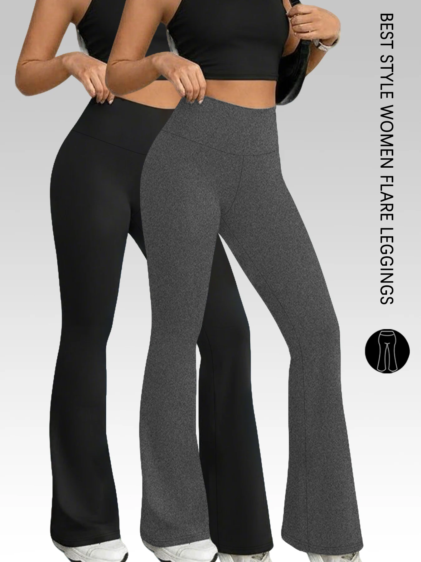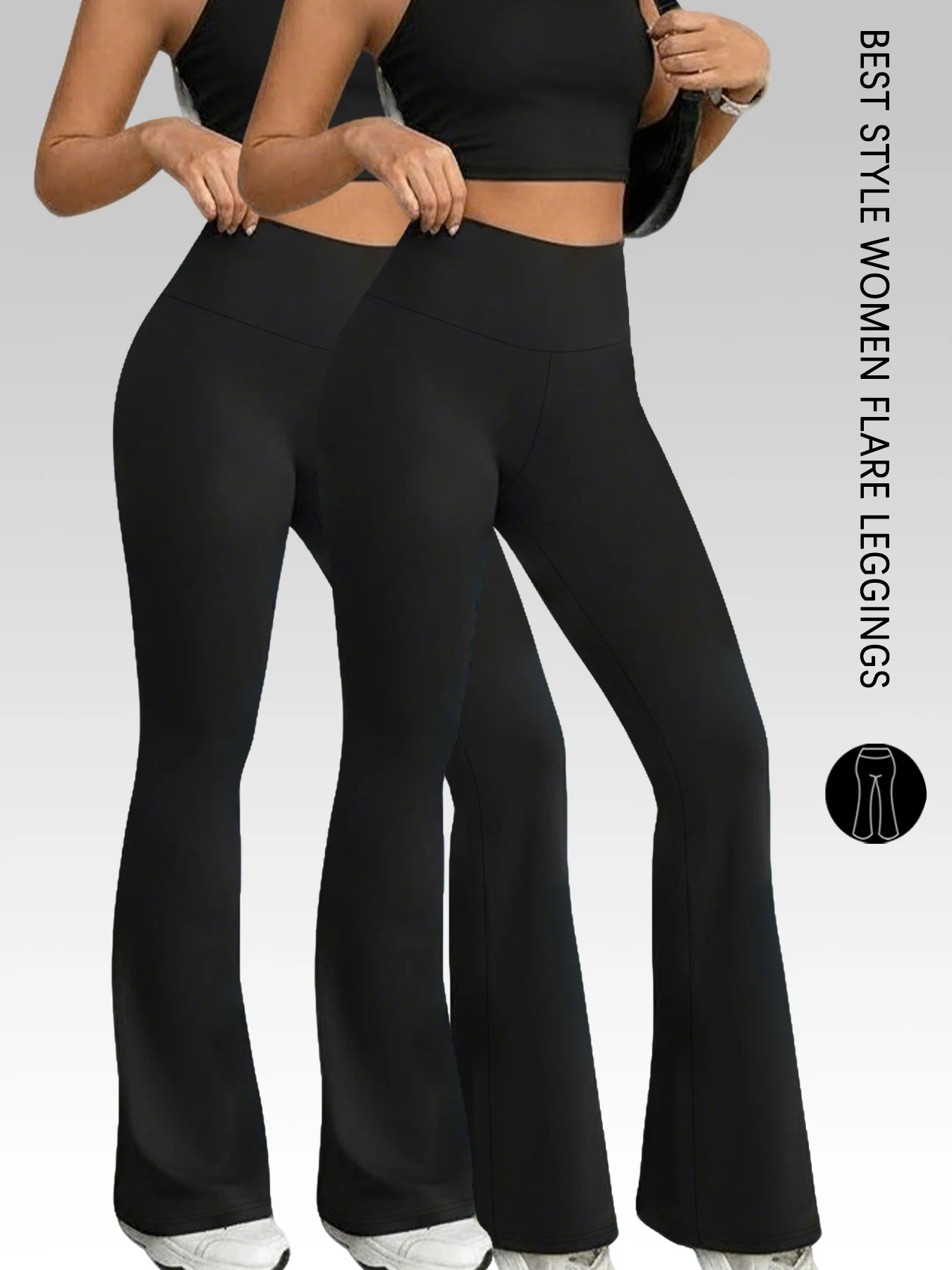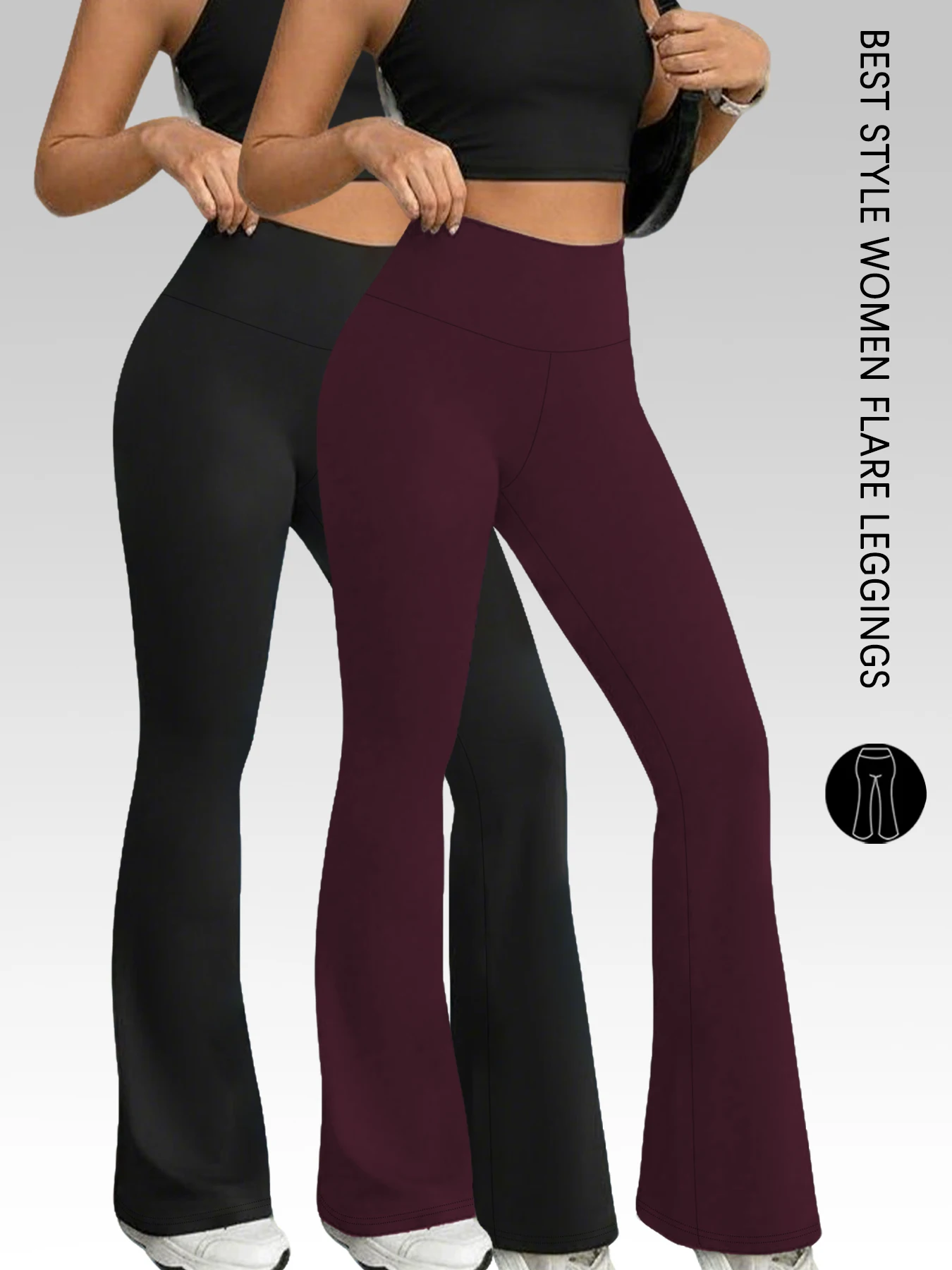 2 pack Ladies high-rise flared yoga trousers with leg bottom. Perfect for yoga or casual.